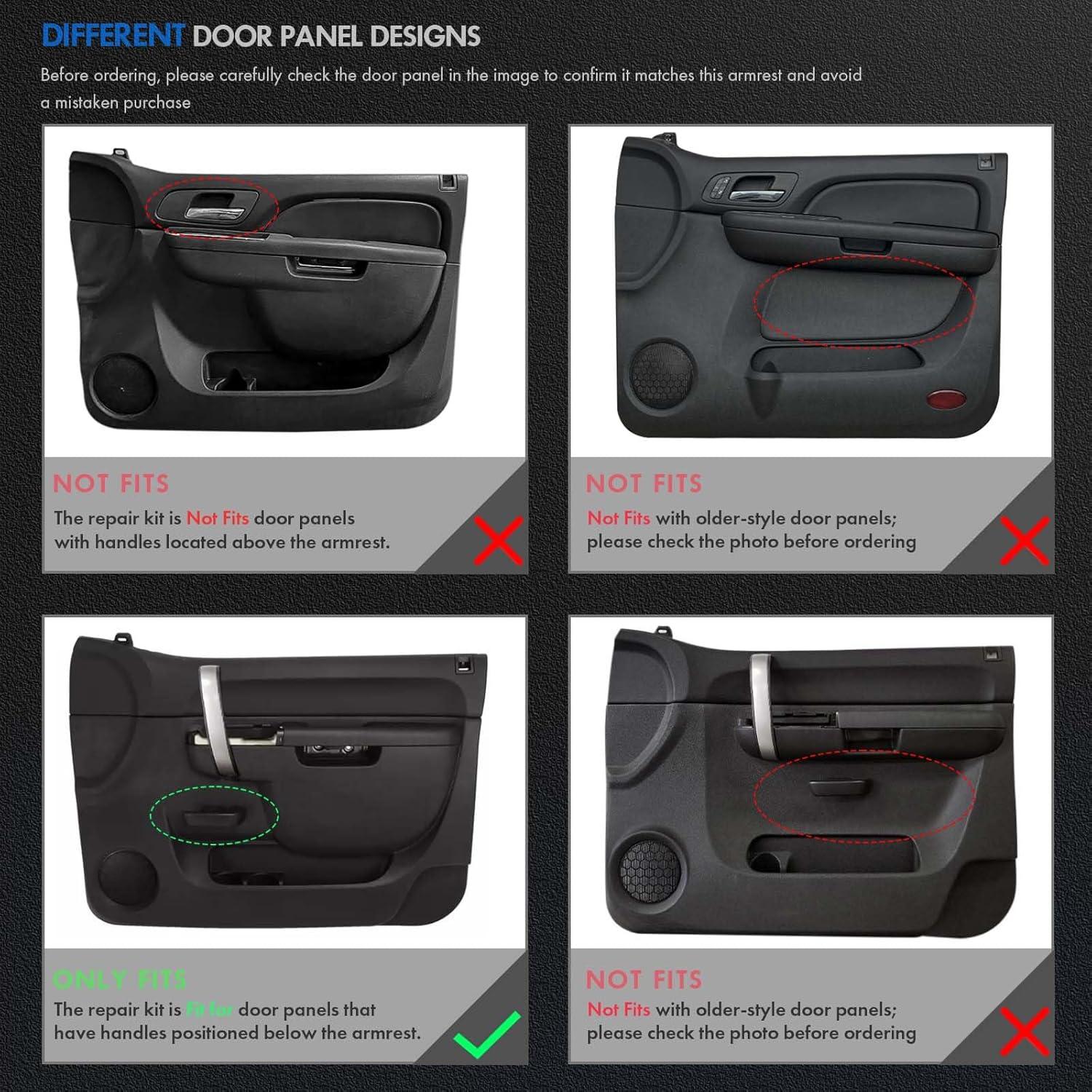 [Vehicle Models]: ①Compatible with Chevrolet Silverado 1500 2010-2013, Silverado 2500 HD 2010-2014, Silverado 3500 HD 2010-2014; Compatible with GMC Sierra 1500 2010-2013, Sierra 2500 HD 2010-2014, Sierra 3500 HD 2010-2014; ②Note: Only fit for door panels with a door release handle below the armrest; ③Fits left driver's side door part number# 22818465, 22818466, 22818467, Fits Right passenger side door part number# 22818470, 22818471, 22818472; ④Ensuring a precise fit with stable placement. No s