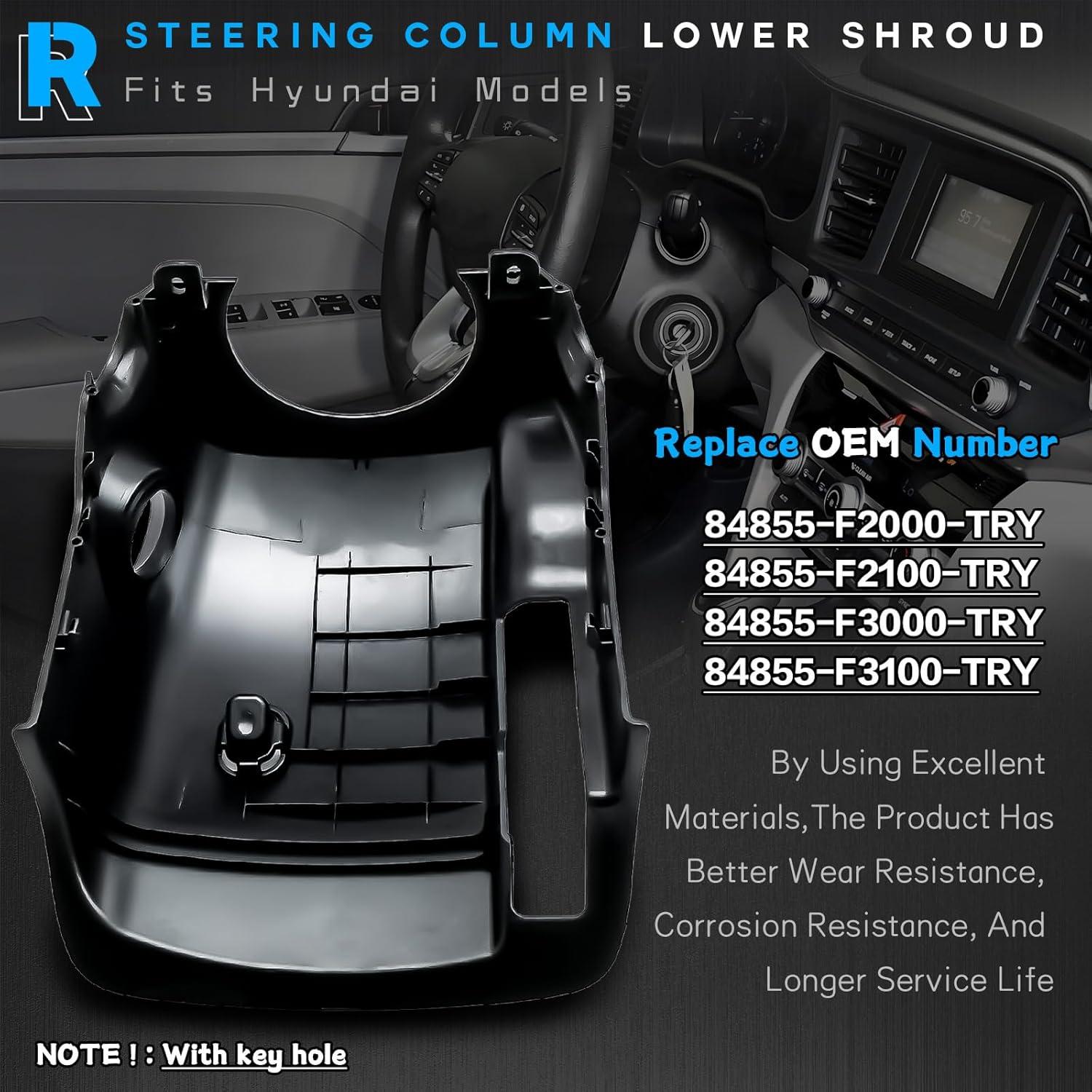 84855-B2000EQ Steering Column Lower Ignition Shroud with Key Start Hole Fit for Kia Soul 2014-2019 Soul EV 15-19, Under Clmn Cover Bezel Panel Replace# 84855B2000EQ, 84855-B2050EQ, Black(For Hyundai Elantra 2017-2020)