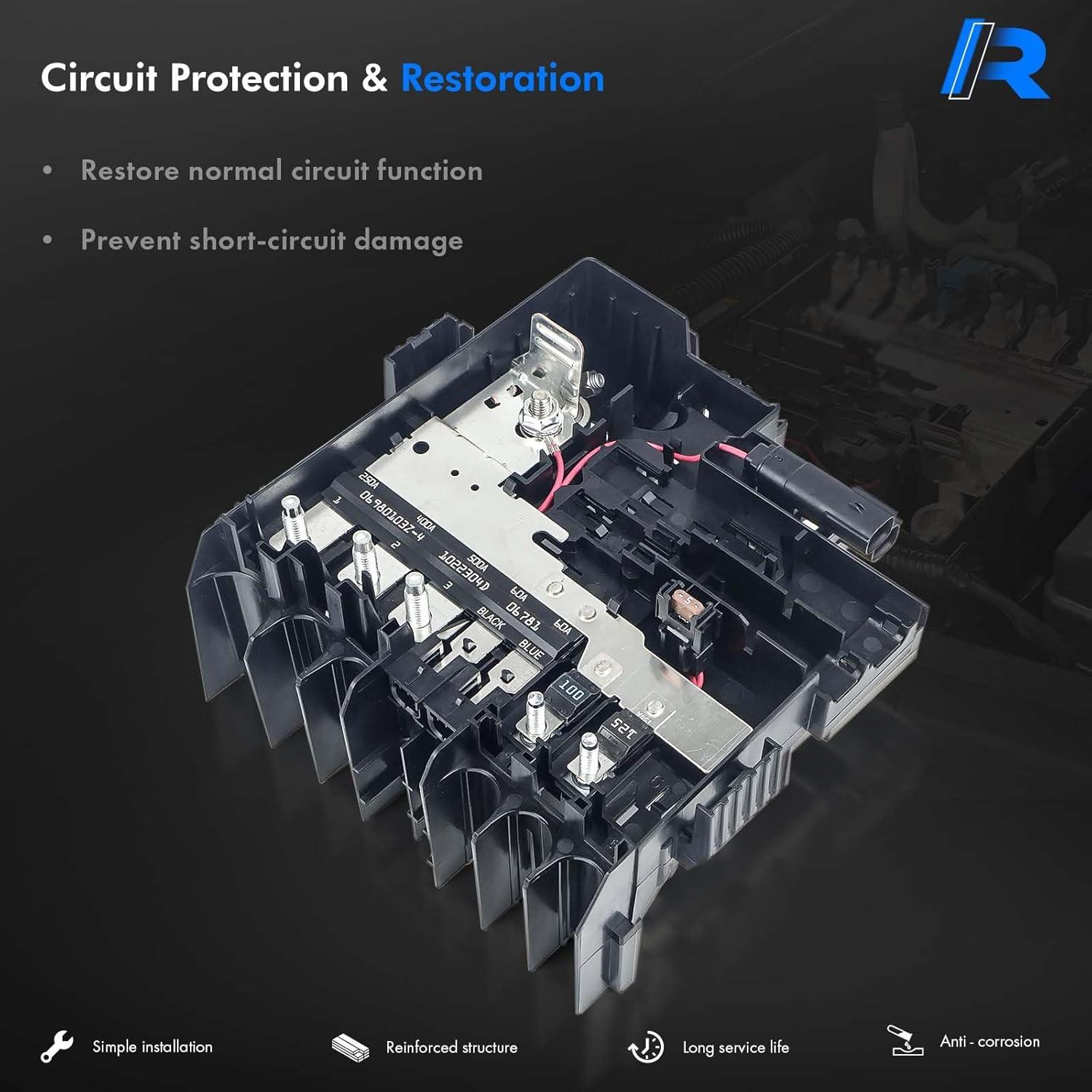 [Durable Material]: The Battery Distribution Engine Compartment Fuse Block is made of reinforced abs plastic and metal material, with excellent impact, abrasion resistance, corrosion resistance, heat resistance and pressure resistance, provide oem quality, reliability, durability and excellent performance