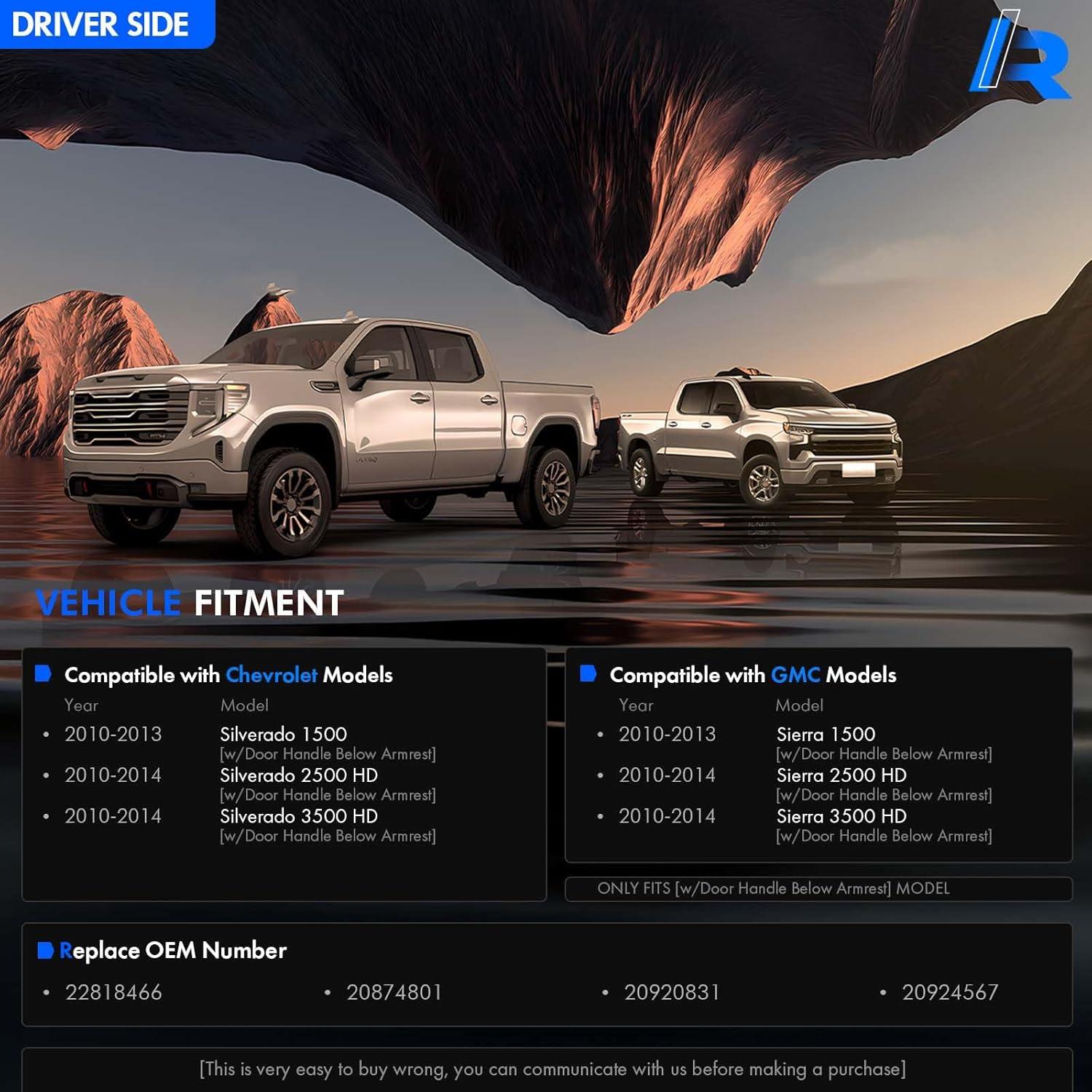 Precise Fitment: Engineered to fit Silverado and Sierra front door panels with OE# 22818465.
